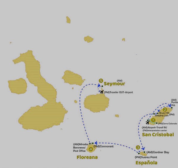 | Monday: | AM: San Cristobal Is: Airport and transfer | PM: San Cristobal Is: Interpretation / C Colorado | ||||