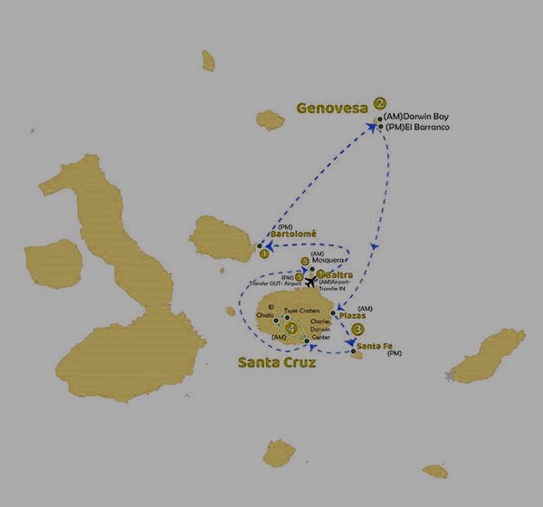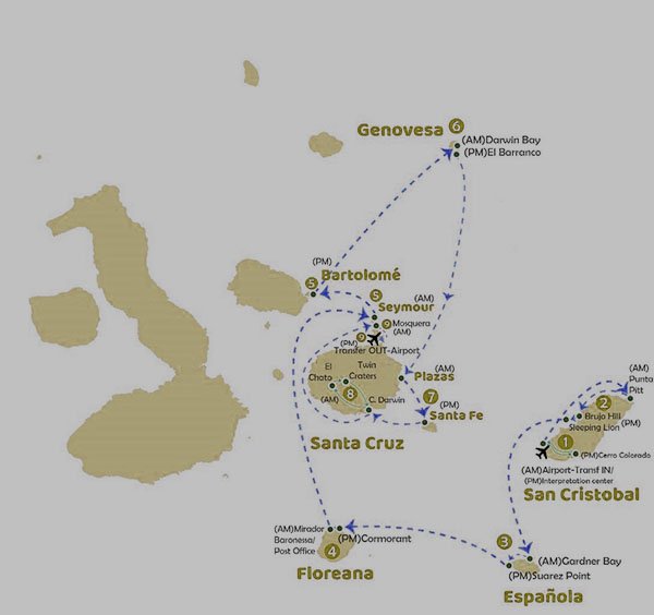 | Monday : | AM: Santa Cruz Is: El Chato – Twin Craters | PM: Santa Cruz Is: Charles Darwin |