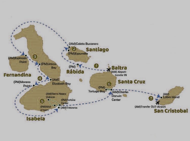 | Wednesday: | AM: Santiago Is: Caleta Bucanero | PM: Santiago Is: Egas Port/ Espumilla | |