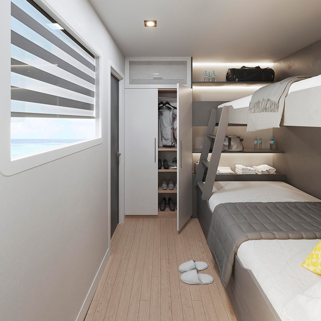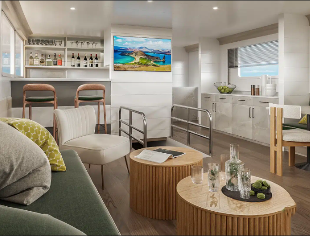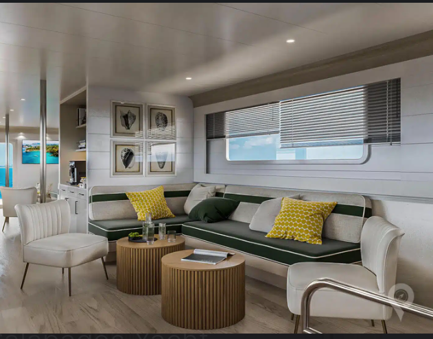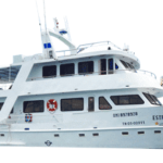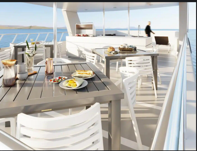 Danubio Azul: Liveaboard de Buceo de Lujo en Galápagos El exclusivo Danubio Azul es un yate turístico de élite con 8 suites privadas —individuales de lujo, dobles premium y cámaras matrimoniales— equipadas con aire acondicionado, baños privados de diseño y ventanas panorámicas al océano; ofrece zonas exclusivas para equipo de buceo y navega directo a Darwin y Wolf, los santuarios submarinos más prestigiosos del planeta, hogar de tiburones ballena, bancos de martillos y mantarrayas gigantes; intimidad absoluta, elegancia acogedora y servicio personalizado de alta gama definen esta experiencia de buceo exclusiva en Galápagos.